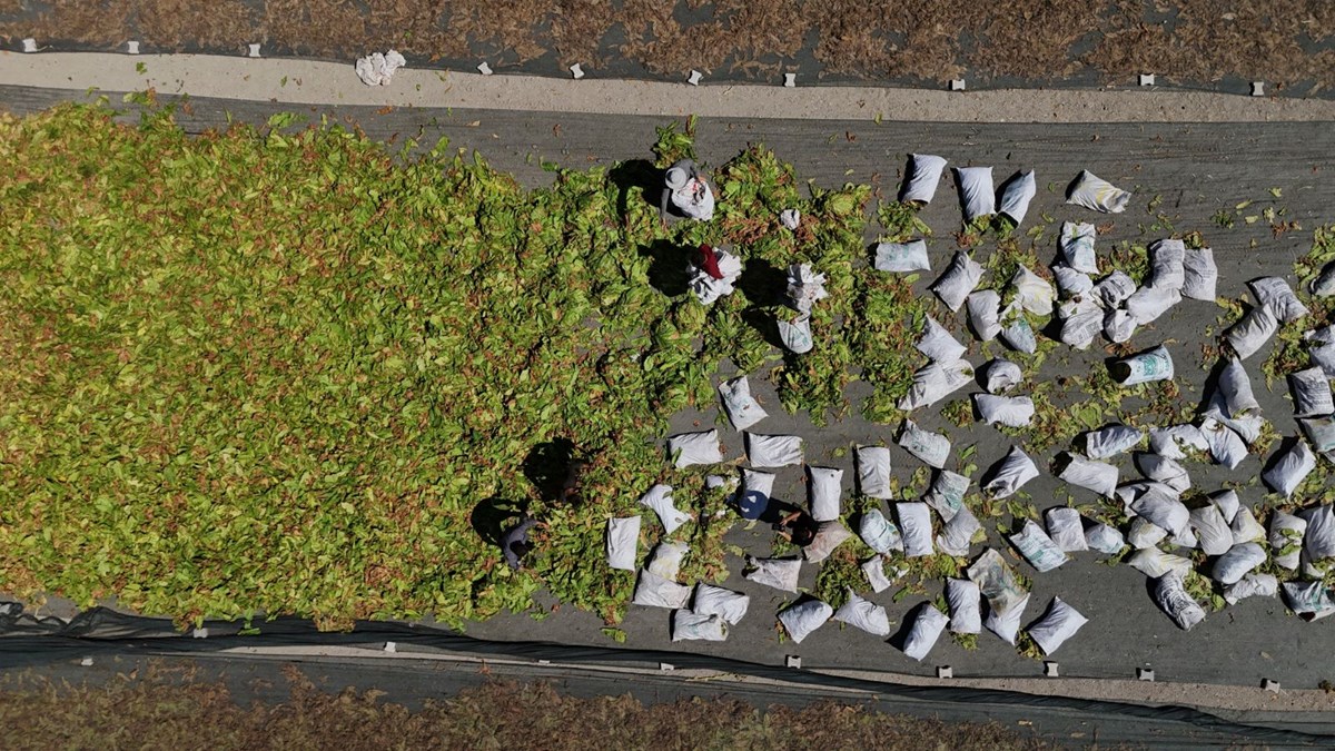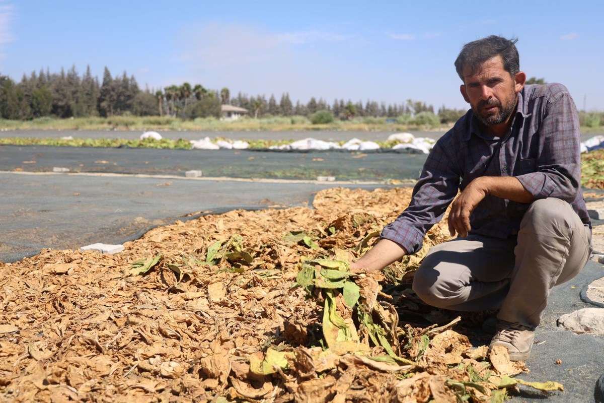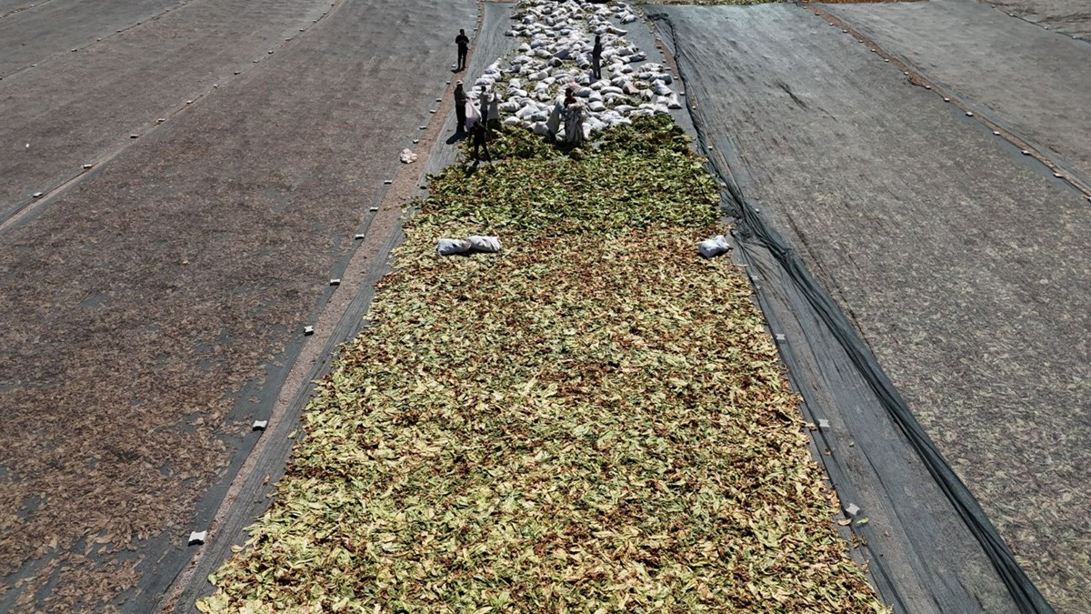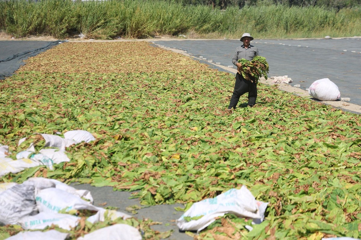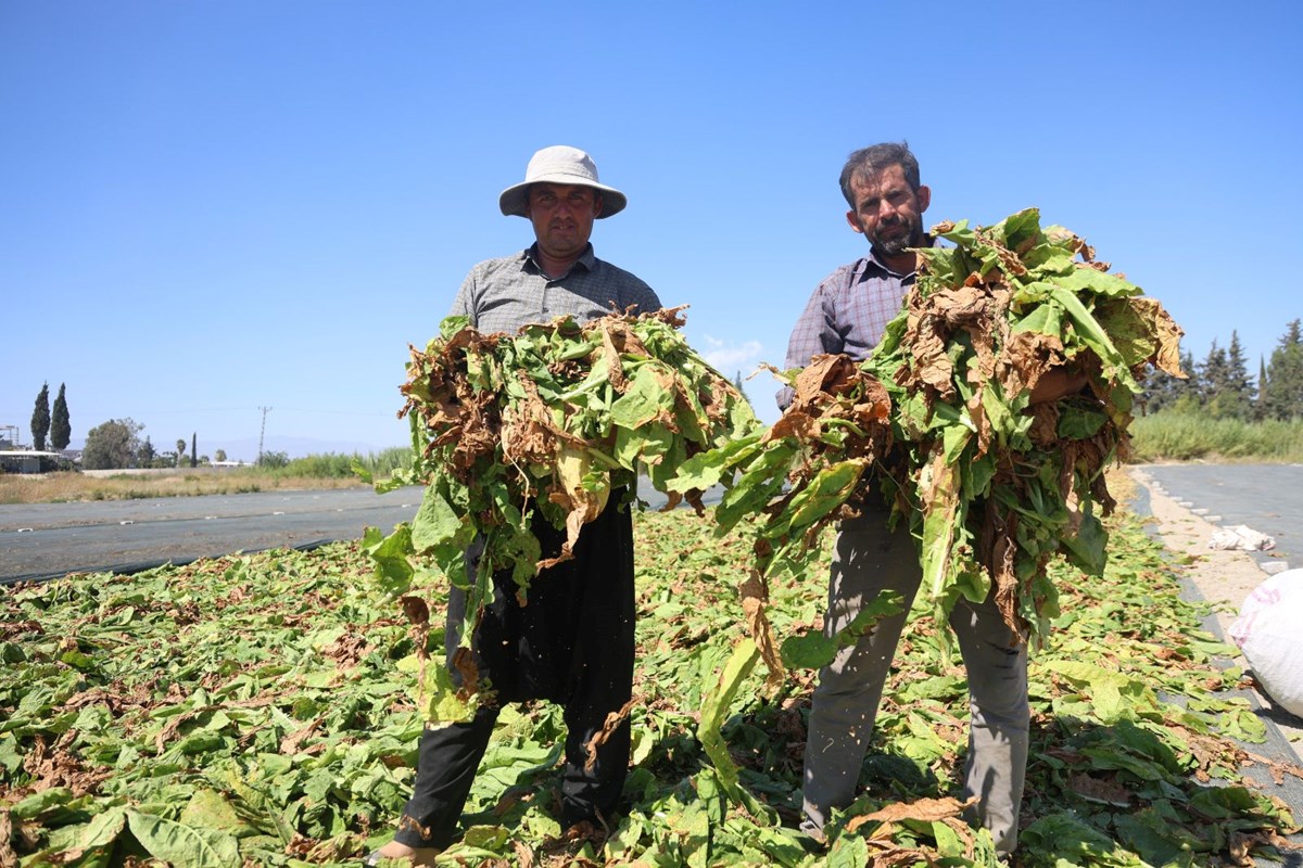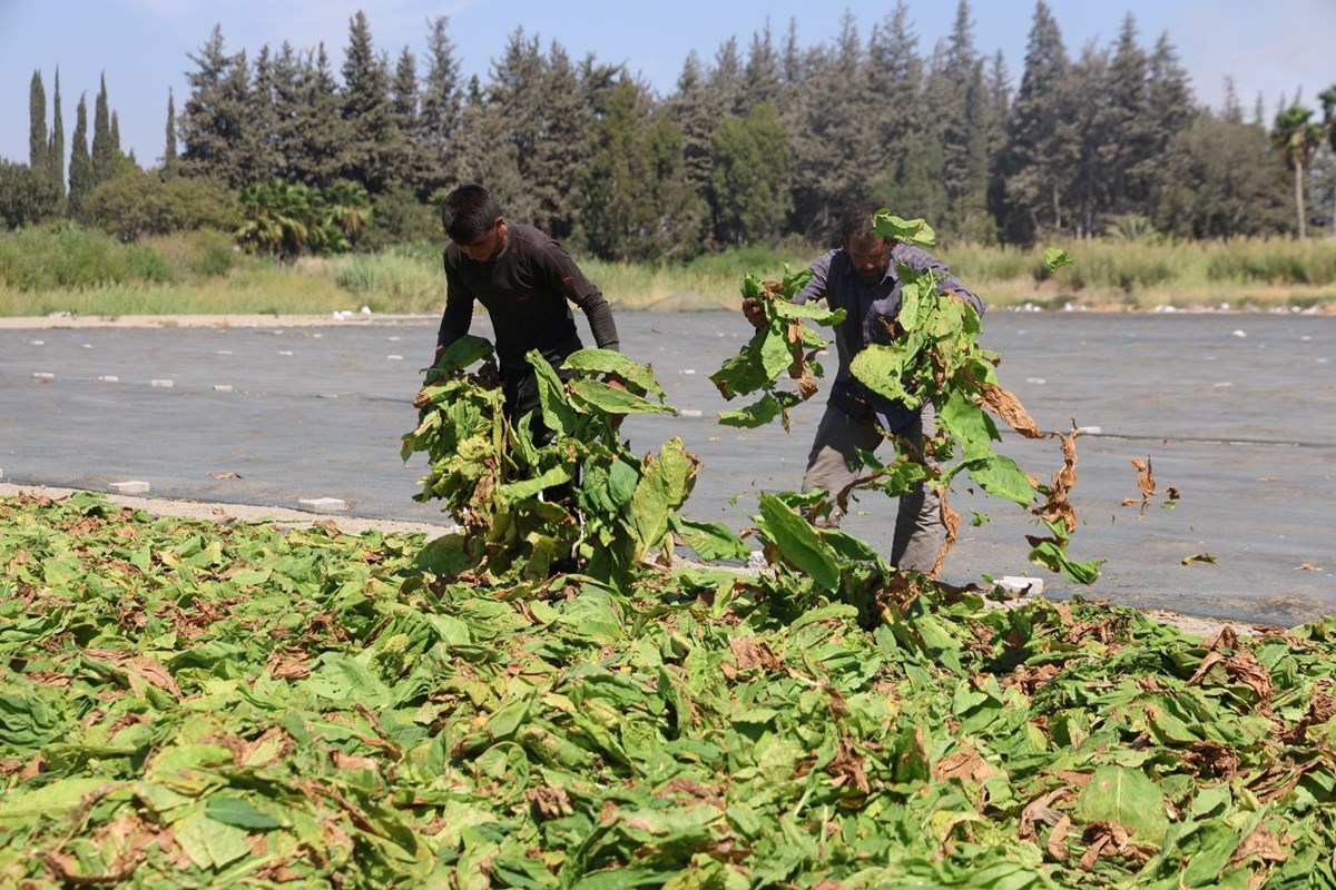 Hava sıcaklıklarının mevsim normallerinin üzerinde ilerlediği Hatay'da tütün hasadı devam ediyor.